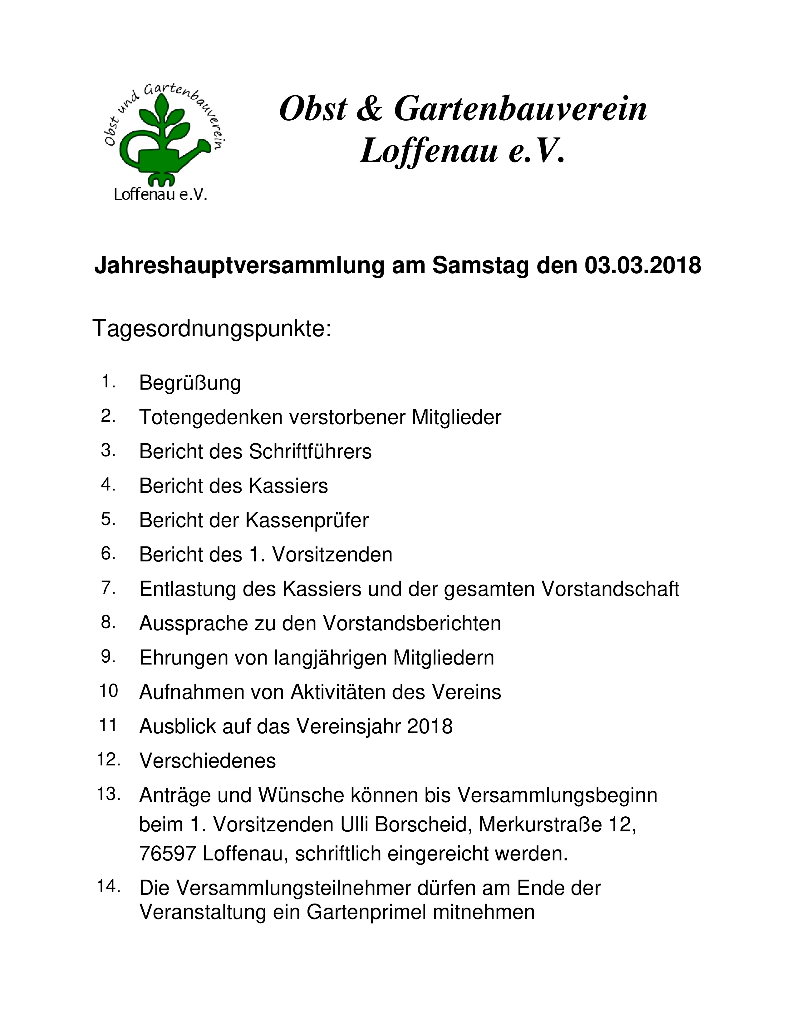 Tagesordnung Jahreshauptversammlung 03.03.2018