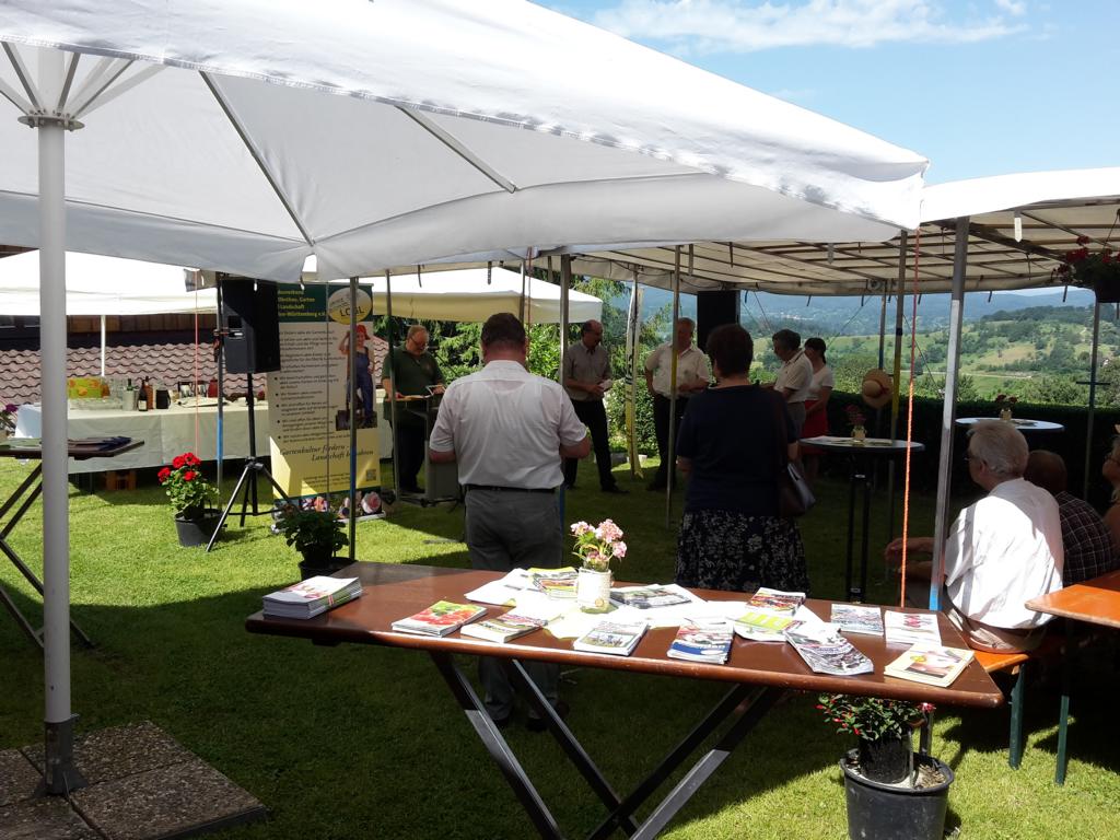 Der Erste Landesbeamte Dr. Jörg Peter unterstrich zudem, dass Begegnungen Sinn und Zweck der offenen Gartentür seien und fügte hinzu „Wir drücken den Knopf auf Willkommen und nicht auf Exit.“ Er bedauert, dass das Thema Nutzgarten etwas an Bedeutung verloren habe. Der Garten entwickele sich heute zunehmend zum Schaugarten. Wünschenswert sei, das Vermächtnis der Generationen weiterzugeben.