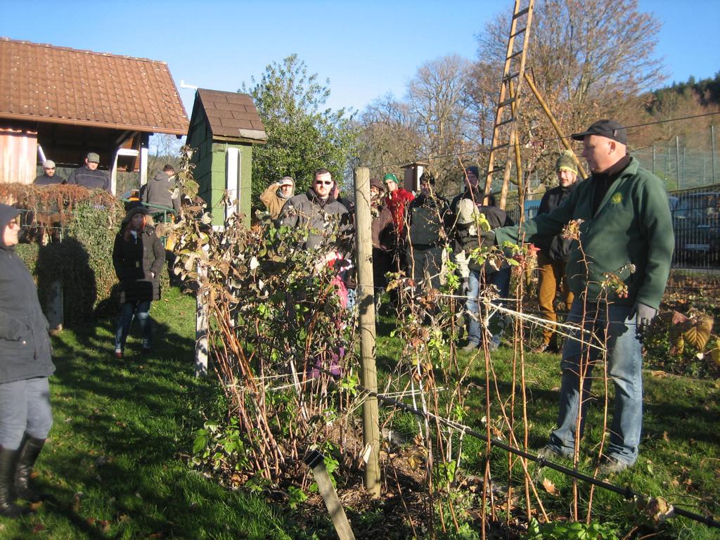 Ein gut besuchter Winterschnittkurs, bei dem sich 25 interessierte Menschen bei strahlenden Sonnenschein im Versuchs- und Lehrgarten des OGV Loffenau einfanden, fand am Samstag, 3. Dezember statt.
